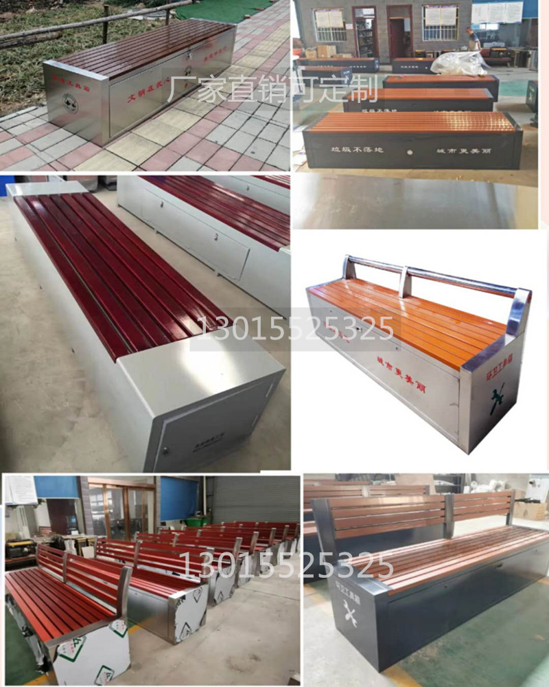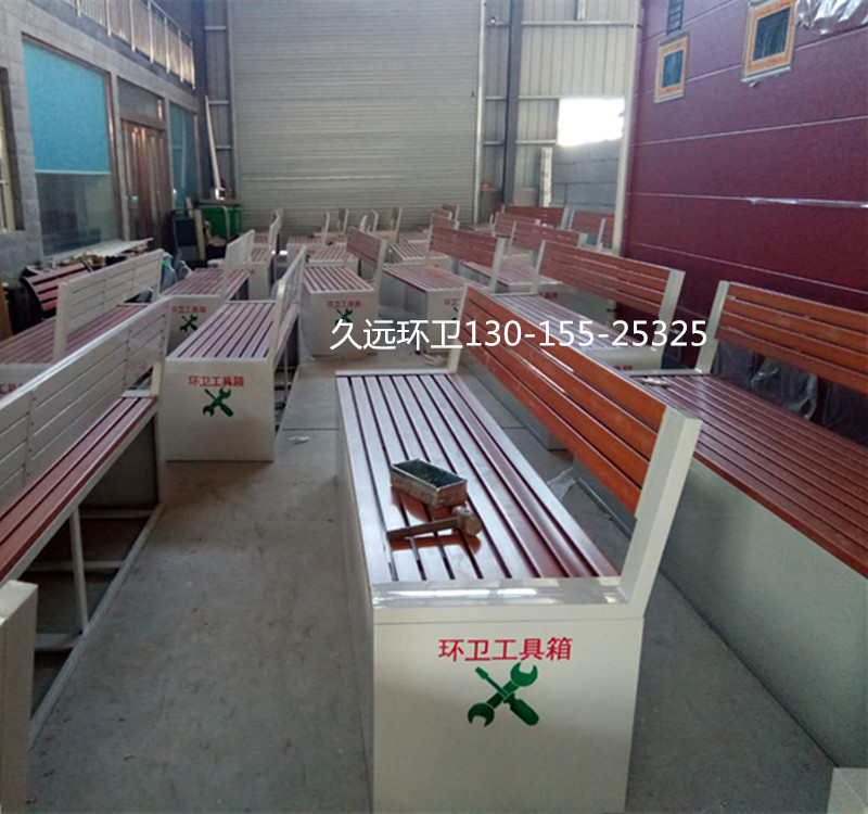 環(huán)衛(wèi)工具箱:也叫保潔員工具箱,環(huán)衛(wèi)工具椅,保潔員休息座椅,市政保潔箱等。工具箱常用尺寸為:長(zhǎng)2400*寬500*高550mm,也可以做成2米,2.4米,2.7米等,寬度和高度也可以定做,滿(mǎn)足不同客戶(hù)、不同場(chǎng)所的使用要求。